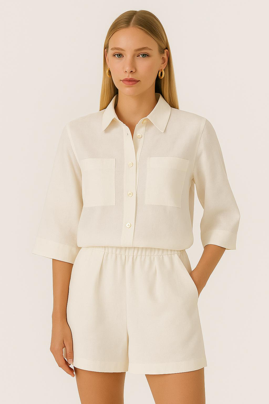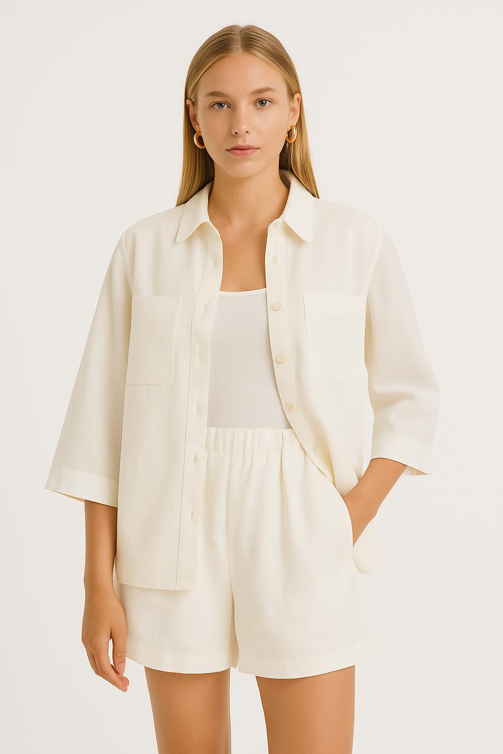Desert Keten Şort Beyaz