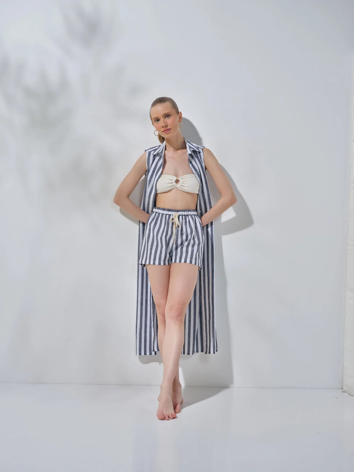 Uzun Kolsuz Gömlek Elbise Lacivert Beyaz Çizgili